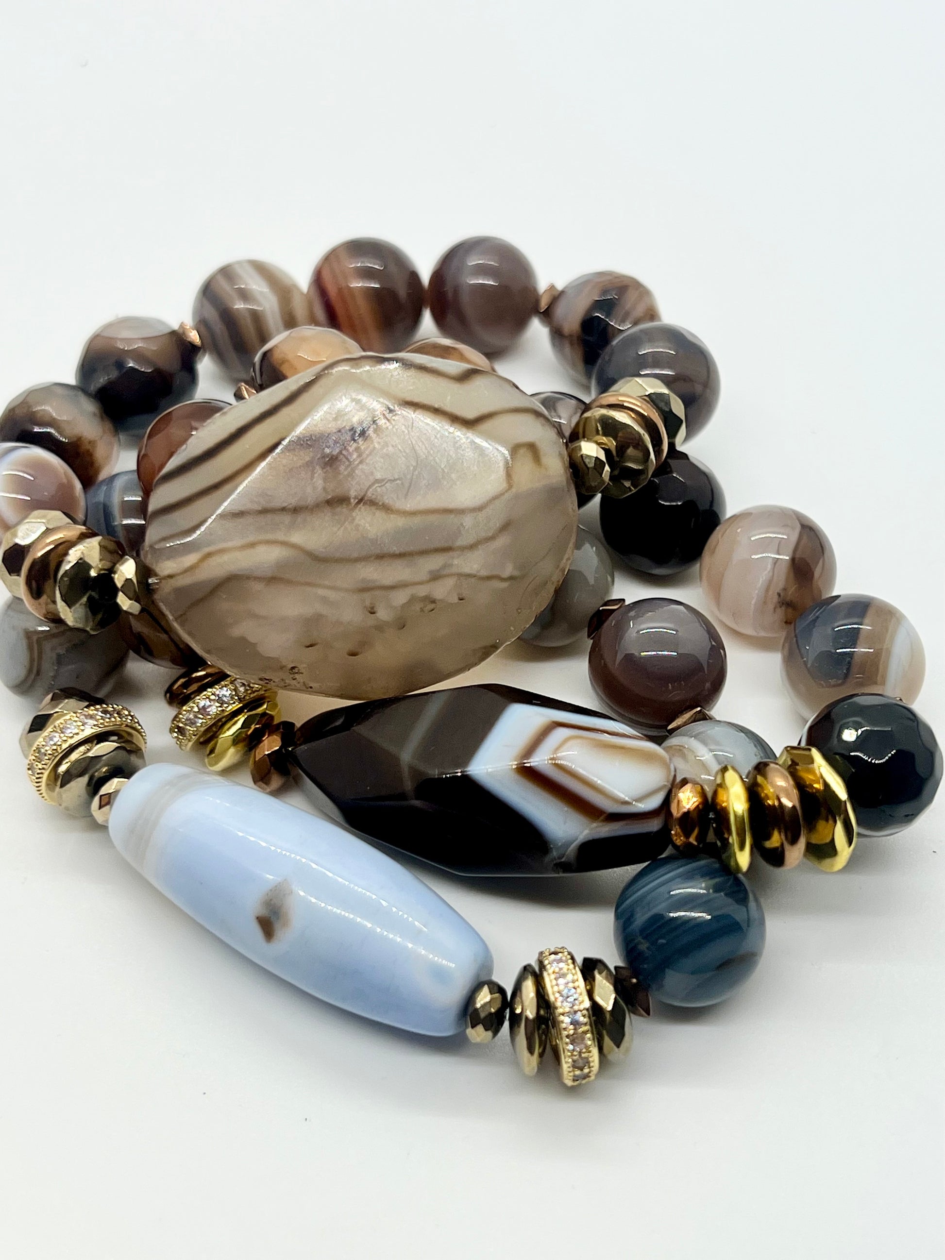 #SheilaReneeDesigns #BandedAgate #AgateBracelet #NeutralJewelry #WearableArt #StatementStack #LuxuryHandmade #BlueAndBrown #EarthToneJewelry #ArtisanJewelry #BraceletStack #ElevatedStyle #JewelryWithMeaning #TimelessStyle