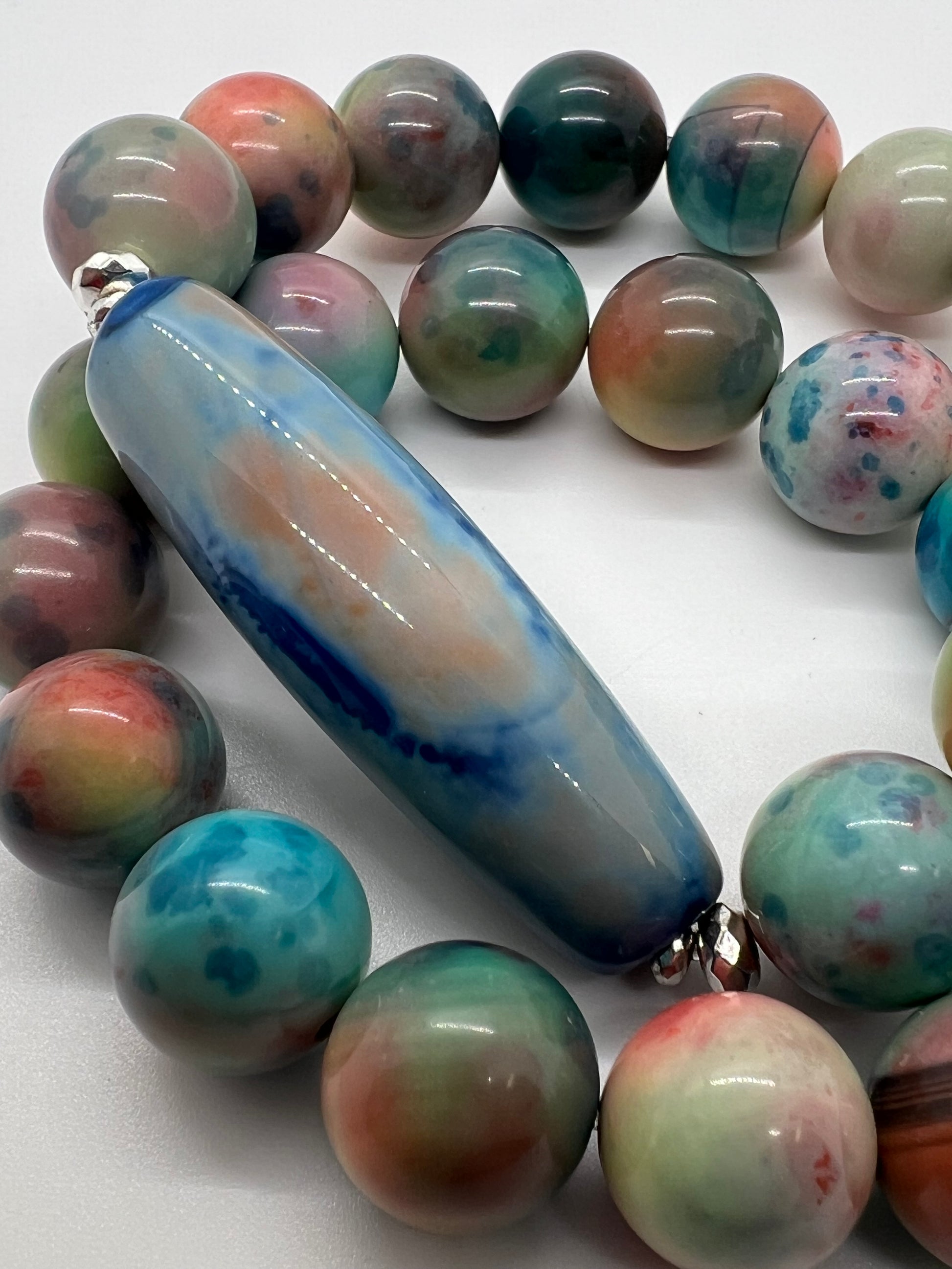- Genuine imperial jasper in multicolor pastel and ocean-inspired tones